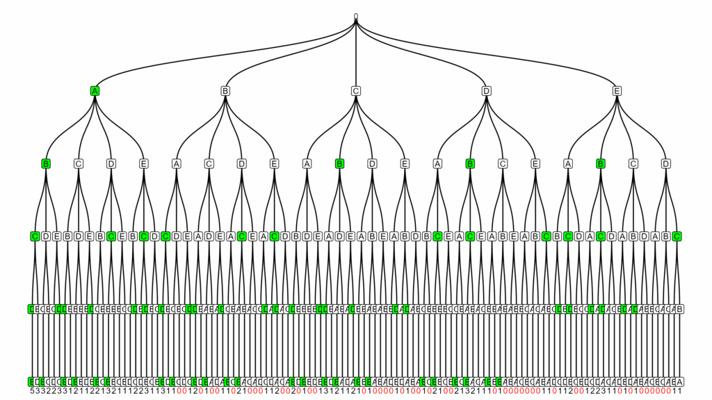 For this reason, we’ll only plot the tree with five items. We’ll use computer programming to determine the probability for larger values of n.